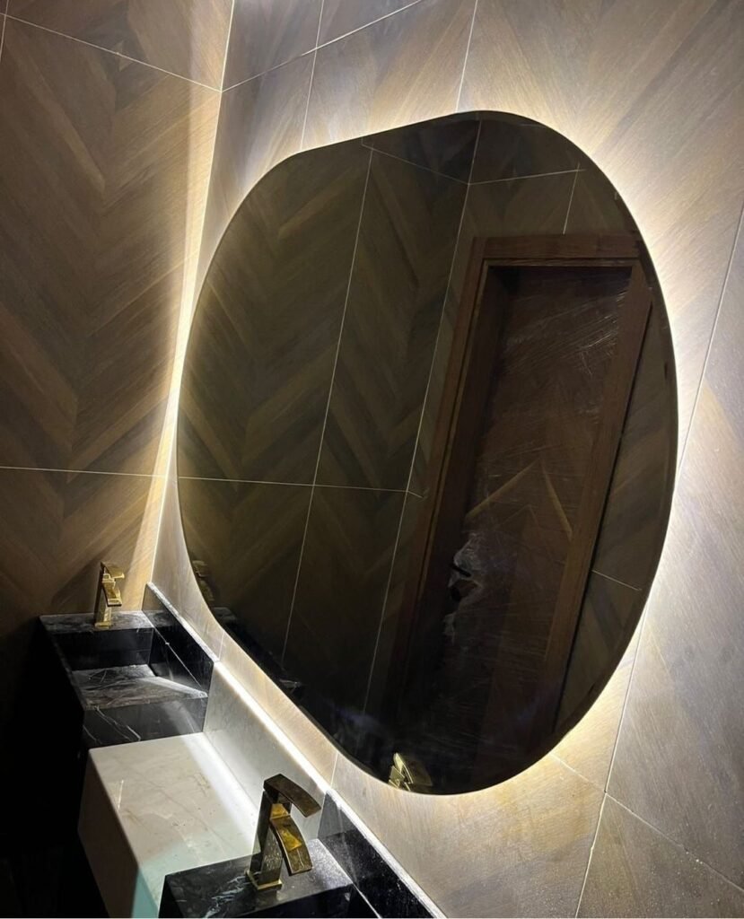 تركيب مرايا زجاج سيكوريت بالرياض للجدران الكاملة مع إضاءة LED وخاصية مضادة للضباب مثالية للصالات الرياضية والحمامات الفاخرة
